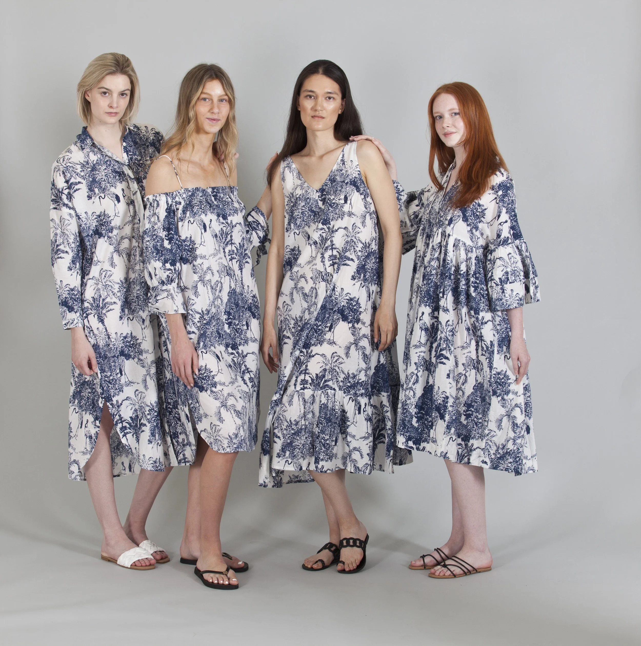 Our brand designed in Canada, is distinguished by its innovative color combinations and playful prints that inspire a spirit of whimsy and adventure. Our commitment to colour is complemented by a deep appreciation for handcrafted artistry, as each garment is meticulously crafted using traditional techniques such as hand-block printing, beading, and hand embroidery.